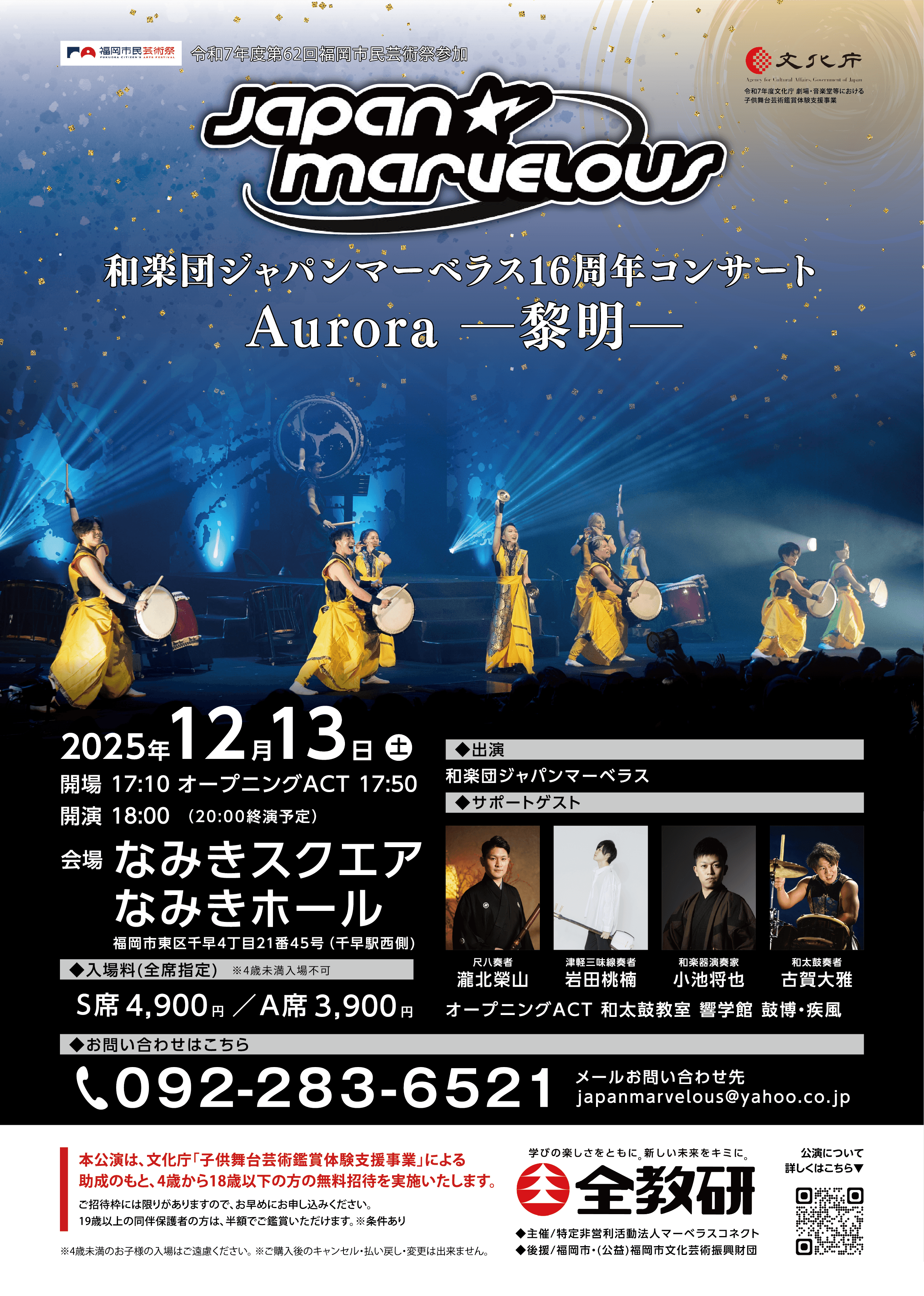 2024年現在15周年を迎え、世界が認めた『和楽団ジャパンマーベラス』となり、世界各国で日本の魂をくり広げている。